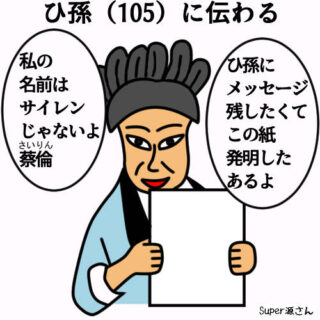 105年、蔡倫が紙を発明する。【暗記用俳句】 ♪蔡倫(さいりん)が ひ孫(105)に伝わる 紙残す蔡倫ってどんな人?蔡倫(さいりん、63年 - 121年)は、後漢(ごかん)の宦官(かんがん)。字は敬仲(かんいご)。出身地は荊州桂陽郡耒陽県(...